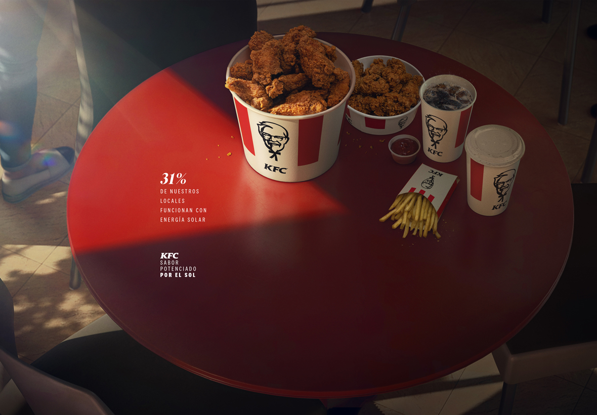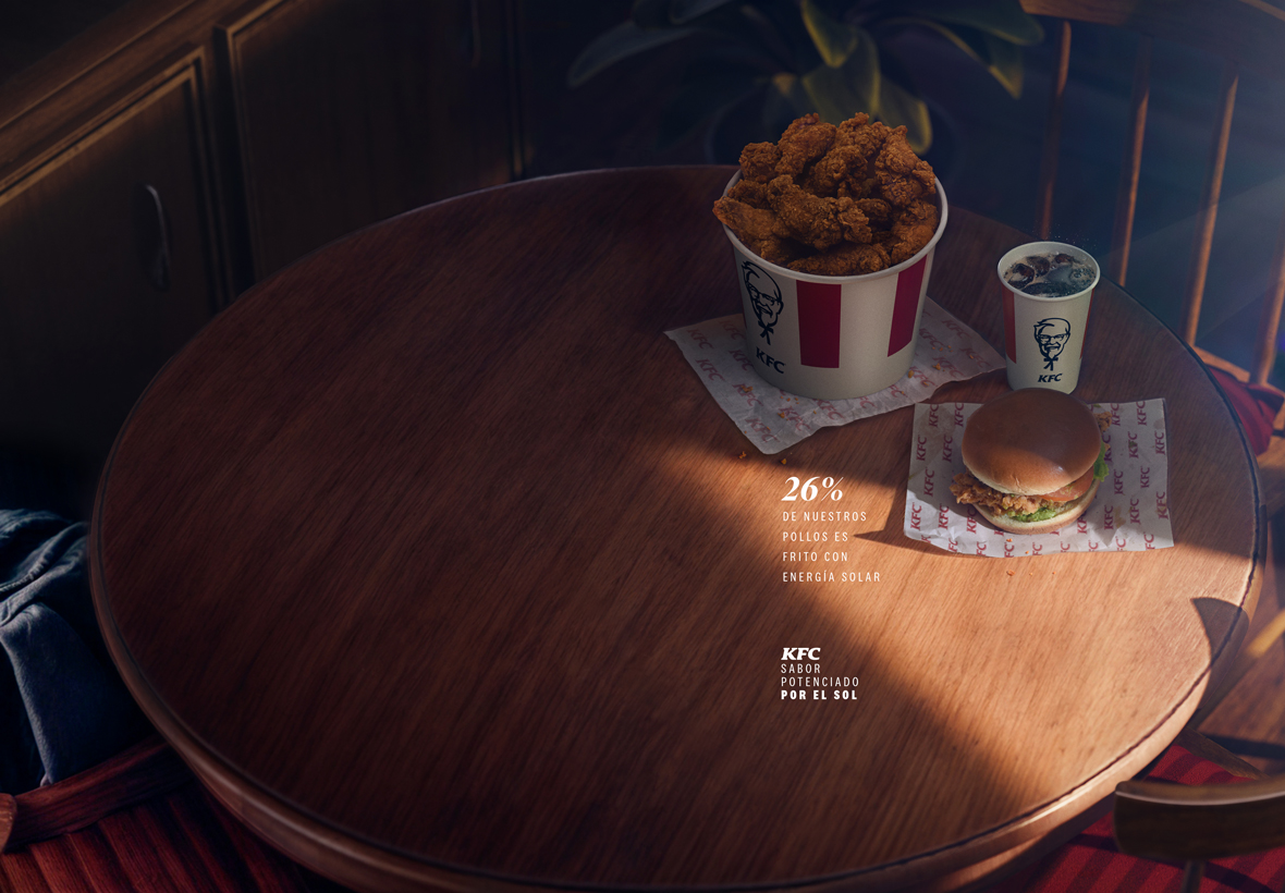 La apuesta de KFC Ecuador por las energías limpias ha transformado significativamente la preparación de su comida, con cerca de un tercio de sus locales operando con energía solar. Este importante cambio necesitaba ser comunicado a los consumidores de manera clara y directa. Sergio Alzate, director creativo de Punto 99, señala: “Ha sido un reto llevar esta información a las personas de manera comprensible, de ahí la idea de que sea el sol quien cuente los avances en el uso de energía solar, directamente en el lugar que más importa para nuestros clientes: la mesa”.