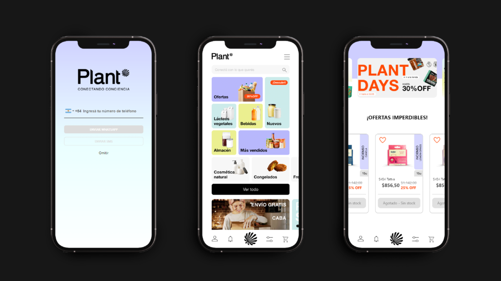 VEO Branding Company es la responsable del desarrollo integral de la identidad visual y posicionamiento de Plant, la primera plataforma de ecommerce argentina que ofrece productos plant based en todo el país. Esta colaboración aseguró una experiencia de marca coherente y memorable en todos los puntos de contacto, incluyendo diseño de packaging, lineamientos de Social Media y de la APP.